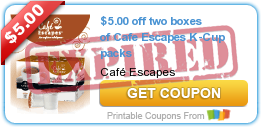 HOT Coupon Alert!!! $5 off TWO Cafe Escapes K-Cups!