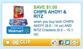 Here is a rare coupon that you may want to print! Head over to coupons.com and you can print this $1.00 off both Chips Ahoy AND Ritz Crackers coupon! I've seen them about $2.50 each at Walmart so you could end up getting them for just $2 each! Use the zip code 33712 as needed to find the coupon at Coupons.com. … [Read more...]