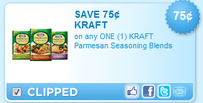 Head over to coupons.com and you can print this $.75/1 Kraft Parmesan Seasoning Blends coupon! They sell this for about $1.75 at Walmart = $1 after coupon! Print the coupon here! … [Read more...]