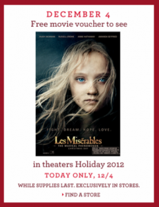 FREE Movies Passes for Les Misérables – Available Today Only (12/4)