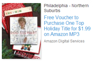 Ready for some Holiday Music?! Right now on Amazon Local you can get a FREE voucher for a Holiday MP3 for just $1.99 on Amazon. Head on over HERE to get your FREE Voucher for a $1.99 MP3 and then head on over HERE to pick out your MP3 If you can not find it in your town look under Philadelphia Pa! … [Read more...]
