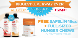 WOW!! The first 10,000 new GNC Facebook fans will receive a coupon code redeemable at GNC retail locations & online for a free 16oz SafSlim (Berry or Tangerine) and a full sized bag of Hunger Chews (a $60 retail value!)! Head over to the GNC Facebook page and fill out the form to get your's!! … [Read more...]