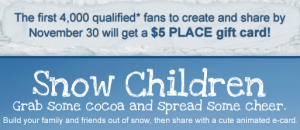 WOW!!! Hurry over to the Children's Place Facebook Page!!! First 4000 to build an e-card with their family in snow gets a $5 Place gift card!! Note: The site is slow (unfortunately as usual with something like this...) but it is still showing less than 2000 cards made so far. Head over here to get started! (Thanks, … [Read more...]