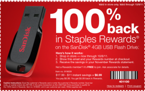 Here is another GREAT freebie for you! Through 10/8, you can print this coupon and take it to your local Staples. Purchase a this SanDisk 4GB USB Flash Drive for only $6.99 -- use your Rewards Card (which is free to sign up for if you haven't!), and you will get the full $6.99 back within a couple of weeks! Sounds like a steal to me! Print … [Read more...]