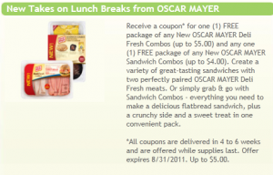 It appears that more accounts now have this offer!! Mine did :)Hurry over and check your Kraft First Taste Accounts, some people have a new offer for a coupon for FREE Oscar Meyer Deli Fresh Combos and a FREE package of their new Sandwich Combos!If you haven't already, head over here and sign up with Kraft First Taste, they regularly have … [Read more...]