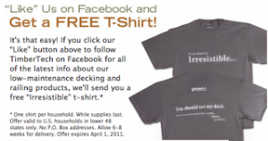 Head over to the TimberTech Facebook Page and you can request a FREE T-shirt!One per household, while supplies last. … [Read more...]