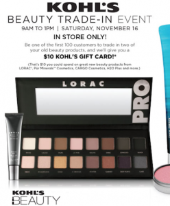 FREE $10 Kohl’s Gift Card when you Trade in 2 Old Beauty Products!!! (11/16, Select Locations)