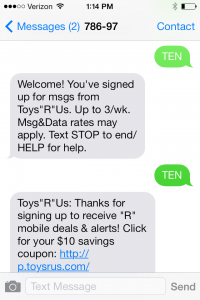 WOAH!!!! Here is a HOT deal for you!! Toys “R” Us is offering $10 off $10 or more! Just TEXT “GO” to 78697 wait for reply, then text TEN. Expires 10/16/13. Valid In Store Only. This is sure to snag you a free toy to add to your gift closet!! Note: I didn't get the coupon the first time I replied with TEN. I replied a SECOND time … [Read more...]