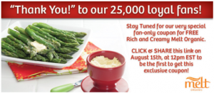 FREE Organic Melt Butter Spread!! First 25,000 only!! Go quick!