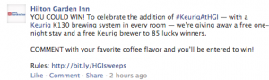 Hilton Garden Inn Giveaway: Keurig Brewer + One Night Stay! 85 Winners!!