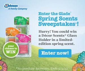 Enter the Glade Spring Scents Sweepstakes by clicking the picture above! Hurry! You could win a Decor Scents Glass Holder in a limited-edition spring scent. This offer is sponsored by SC Johnson, a family company. Ends May 4th! … [Read more...]
