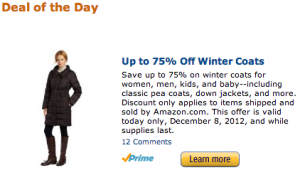 Sweet!! If you have been looking for high quality Winter Coats here is a great deal! Today's Amazon Gold Box Deal of the Day is up to 75% off Winter Coats for the entire family!! They have down jackets, pea coats, Trench coats, Sherpa jackets and more!! All marked WAY down! This is today only -- so head over to Amazon and check it out! … [Read more...]