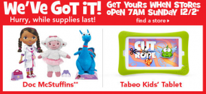 Tabeo and Doc McStuffins in Stock at Toys R Us Sunday Morning!