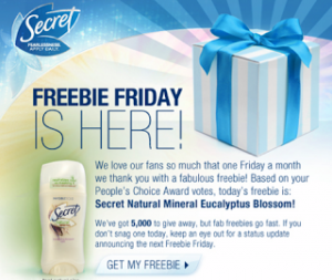 Expired – FREE Secret Deodorant 1st 5,000 (Facebook)
