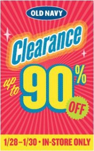 Old Navy – Up to 90% Off In-store 1/28-1/30