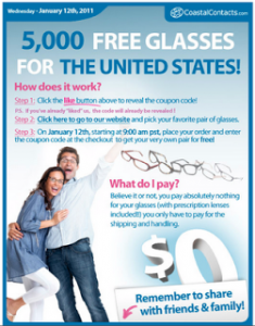 Reminder: Coastal Contacts Giveaway 1/12 9am PST! 5000 Pairs of Glasses!