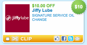 $10 off Jiffy Lube Oil Change coupon
