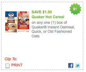 Update: The printable coupon is now gone from the RP website. But, it is in this week's insert!Dollar General has the Quaker Hot Cereal on sale for $10/10 this week (you don't have to buy 10 to get the deal). If you head over here you can print a $1/1 coupon up to two times. Plus, there is a $1/1 coupon in this weeks Red Plum insert too! … [Read more...]