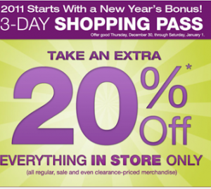 Kohls: 20% off Shopping Pass (Expires 1/1/11)