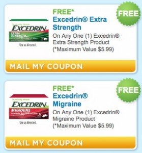 The FREE coupons for both Excedrin Migraine and Excedrin Extra Strength are available again!Head on over here and request your's! (Click on Health Care on the side bar and it will pull up these offers) … [Read more...]