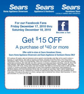 Sears Hometown Stores: $15 off any $40 purchase (12/17-12/18)