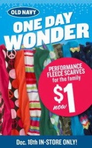 Old Navy: 1 Day Wonder – Fleece Scarves for $1! (Sat 12/18)