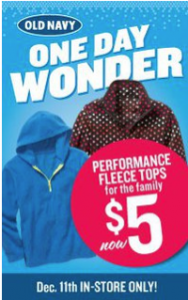 Old Navy: $5 Performance Fleece – 12/11