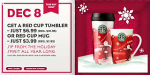 Today's deal at Starbucks is a great deal for office Christmas gifts (or just a treat for you!)Their Red Cup Tumbler is only $6.99 and the Mug is $3.99. Limited supplies. Today only. … [Read more...]