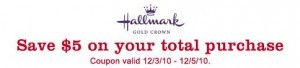 $5 Off Hallmark Purchase – No minimum purchase (exp 12/5)