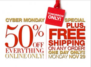 New York & Company has everything 50% off for Cyber Monday! Plus, FREE shipping. Use the Promo code 6123 to get this deal. Shop through Ebates to get 7% cash back (plus $5 if you are new to Ebates!) … [Read more...]
