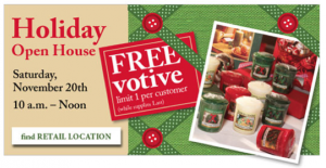 Tomorrow, 11/20, Yankee Candle Stores are having an Open House. They are giving away FREE Votive Candles between 10-Noon. Also, before you head over there, you should print off the Buy 2, get 2 FREE coupon from Yankee Candle's Facebook page. … [Read more...]
