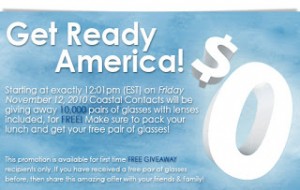 As a reminder Coastal Contacts is doing their giveaway of 10,000 pairs of glasses with lenses today at Noon EST. Using the promo code 10000USA at 12:01 you will be able to order a new pair of glasses and only pay the shipping/handling which should be about $10. My suggestion is to head over to Coastalcontacts.com now and have everything … [Read more...]