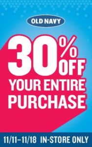 30% off your ENTIRE Old Navy Purchase 11/11-11/18
