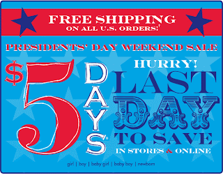 The Children’s Place has a great sale online, through today, for President’s Day.