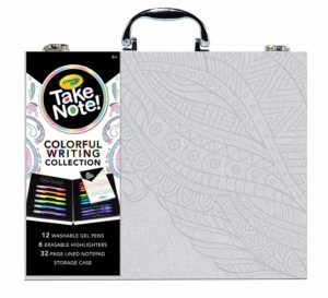 Crayola take note! colorful writing collection offers a sampling exciting products from our newest writing tools in a cool, compact carrying case. Includes washable gel pens, 6 dual-ended highlighters, and a 32-page notepad—all the tools you need for folks to take note of your colorful writing!