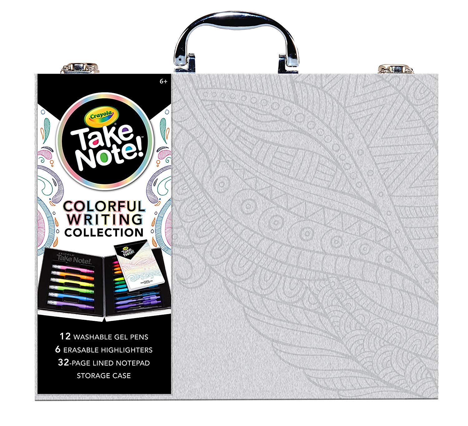 Crayola take note! colorful writing collection offers a sampling exciting products from our newest writing tools in a cool, compact carrying case. Includes washable gel pens, 6 dual-ended highlighters, and a 32-page notepad—all the tools you need for folks to take note of your colorful writing!