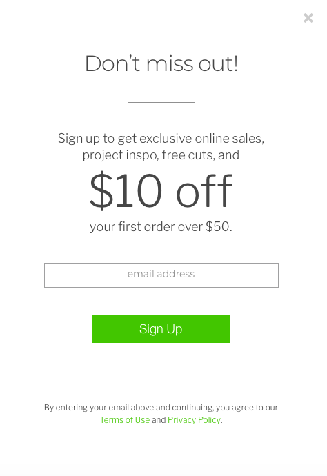 And be on the look out for a pop up when you get to the website for $10 off when you enter your email. It looks like this:
