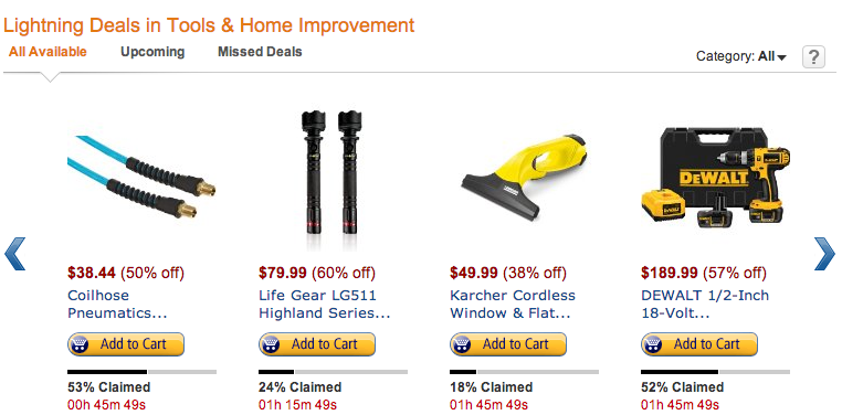 Plus when you add it to your cart you get another $25 off!! That makes your total for this just $164.99 which is a great deal for Dewalt! To find this, head over to the Lightning Deals in Home Improvement page here and then scroll down till you see this box: