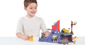 This mini playset comes with a 3″ Janja figure and features a volcano boulder launch, bone-jaw jail trap, spinning tree lookout, a collapsing floor and much more. It also works with all Lion Guard 3″ figures.