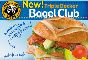 Head over here and you can print a coupon for a FREE Triple Decker Bagel Club when you buy one! That should mean an inexpensive lunch for you and a friend 🙂