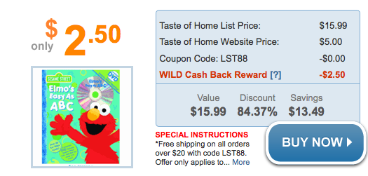 This Elmo Easy as ABC Book and DVD retails at $15, when you head over here you can go through Shop at Home and get it for only $5 + $1 shipping when you follow these steps: