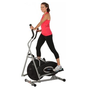 The Aero Air elliptical features large pedals with ridges for secure and stable footing as well as dual-action workout arms that engage your upper body in the workout. The magnetic resistance is easy to adjust with a dial tension system and the easy to read LCD display indicates distance, calories burned, elapsed time, and speed so that you can track your progress. The Aero Air measures 33 by 19 by 46 inches (LxWxH) assembled, weighs 51 pounds, and carries a one year warranty from Exerpeutic.