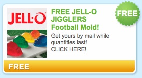Expired – Free Jello Jigglers Football Molds!January 19, 2011 by Wheel 'n Deal Mama 2 CommentsTweetPinShare0 SharesExpired now. Ok this is an AWESOME freebie for those of you that are Football Fans! Head over here and request a FREE Jell-O Jigglers Football Mold! One per household. I’m sure this freebie won’t last long so get it quickly. Bottom of the page, it looks like this:It will be delivered before Superbowl Sunday!Thanks, I Love Free Things!TweetPinShare0 Shares