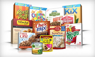 12.8 ounce Cinnamon Toast Crunch cereal13 ounce Reese’s Puffs cereal12 ounce Kix cereal12.8 ounce Cascadian Farms Organic cereal5.8 ounce Fiber One 90-Calorie Chewy Bars5.8 ounce Hamburger Helper11 ounce Green Giant Corn Niblets9.5 ounce Old El Paso Tortilla Stuffers5 ounce Fruit Roll-Ups10.5 ounce Chex Mix Muddy Buddies snack mix17.5 ounce Betty Crocker Sugar Cookie mix13.7 ounce Wanchai Ferry Orange Chicken dinner kit