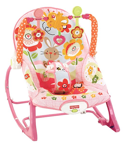 The Fisher-Price Infant-to-Toddler Rocker in this sweet bunny print is just right for growing babies. It’s a reclining infant seat with a fold-out kickstand that makes it great for feeding. Adjust the seat upright so baby’s movements create a rocking motion, while stimulating toys and music are there for baby to enjoy. For naptime, you can remove the toy bar and switch on calming vibrations. And as your child grows, this product becomes a toddler rocking chair for children up to 40 lbs. The seat pad is machine washable and dryer safe.