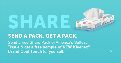 Head over here and you can send a FREE mini box of Kleenex to a friend AND get a free box of Kleenex Cool Touch yourself!