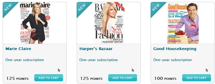 Wow — Recyclebank has added some new rewards for not a lot of points!! You can one-year subscriptions to Marie-Claire, Good Housekeeping, Oprah Magazine, Seventeen and more!! Starting at just 100 Recyclebank points!! Just click on the Get Rewards Tab and you can find them!