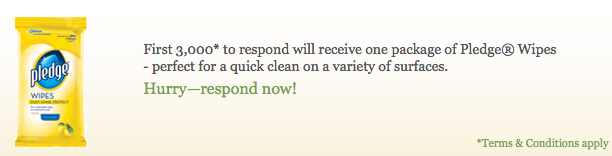 HURRY over to Right@Home. They are offering up a new giveaway for March! The first 3,000 will score a FREE package of Pledge Wipes! Go now!