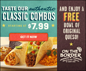 Do you have an On the Border nearby? You are going to want to hurry and print this great coupon for FREE Queso when you buy any Combo!!