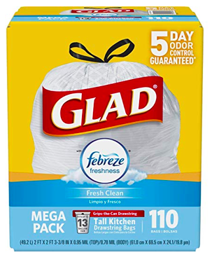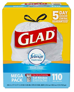 Had on over to Amazon where you can get this Glad OdorShield Tall Kitchen Drawstring 13 Gallon Trash Bags 110 Count for only $13.35 (regularly $20)